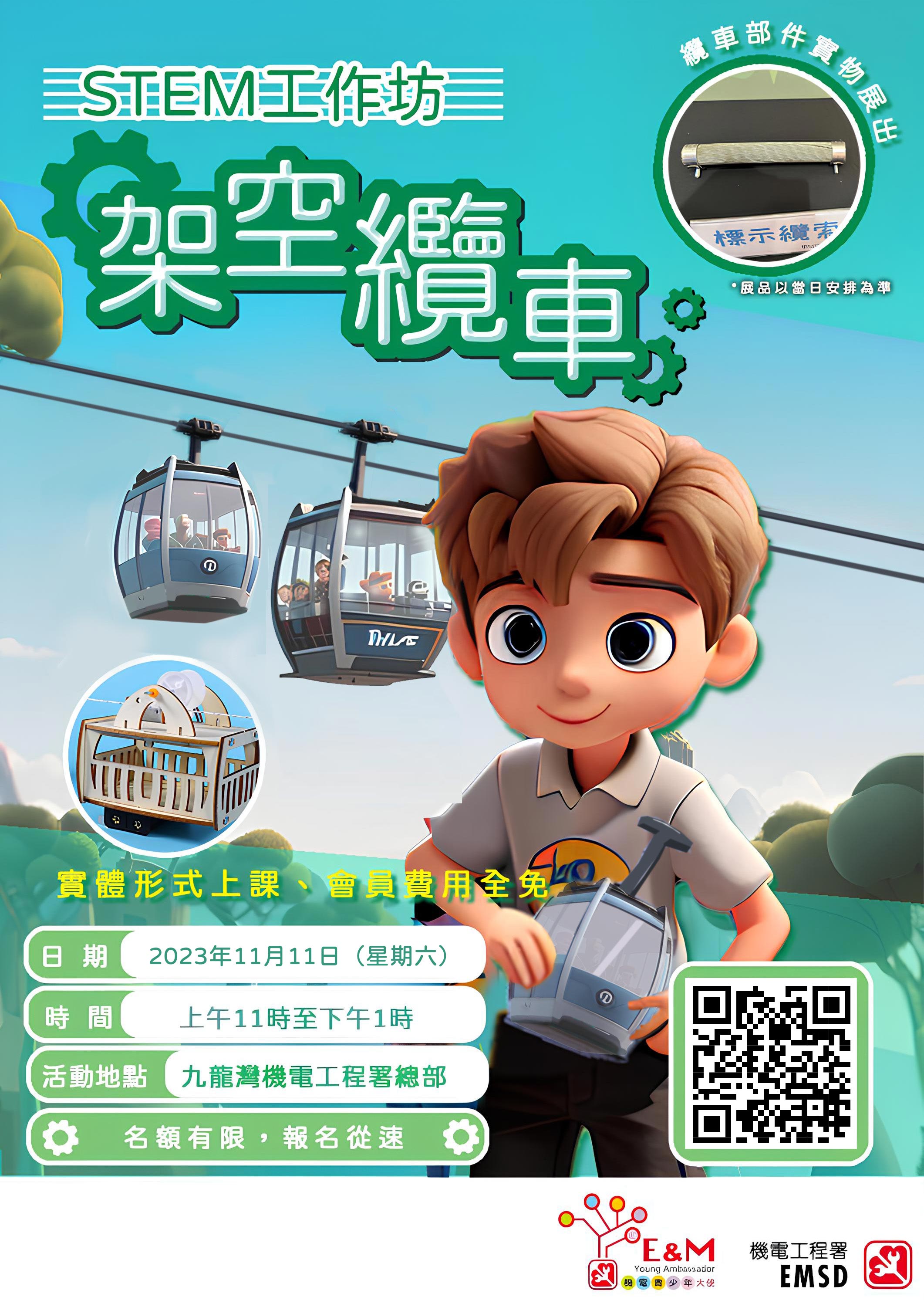 我哋曾經喺會訊介紹過架空纜車,講述喺香港見到嘅纜車例如海洋公園嘅『單纜式纜車』同埋昂坪嘅『雙纜式纜車』。相信各位對纜車運作原理有所理解,但各位又有冇諗過纜車點樣可以喺極端天氣仲可以保持到咁安全?想知就參加今次嘅STEM實體工作坊啦!除咗會有機電工程署嘅專業工程師親自介紹返架空纜車同埋機電工程署既職責之外,各位同學仲可以去製作屬於你哋嘅架空纜車模型㗎~👬