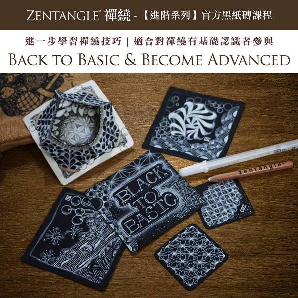 禪繞黑紙磚於2011年6月推出,透過白水漾及白碳筆繪畫出與白紙磚中不一樣的畫面。本課程特別為對禪繞已有一定基礎的朋友而設,透過過往認識的技巧和圖樣重新出發,讓基礎配搭進階的技巧,體現黑紙磚的神秘魅力。