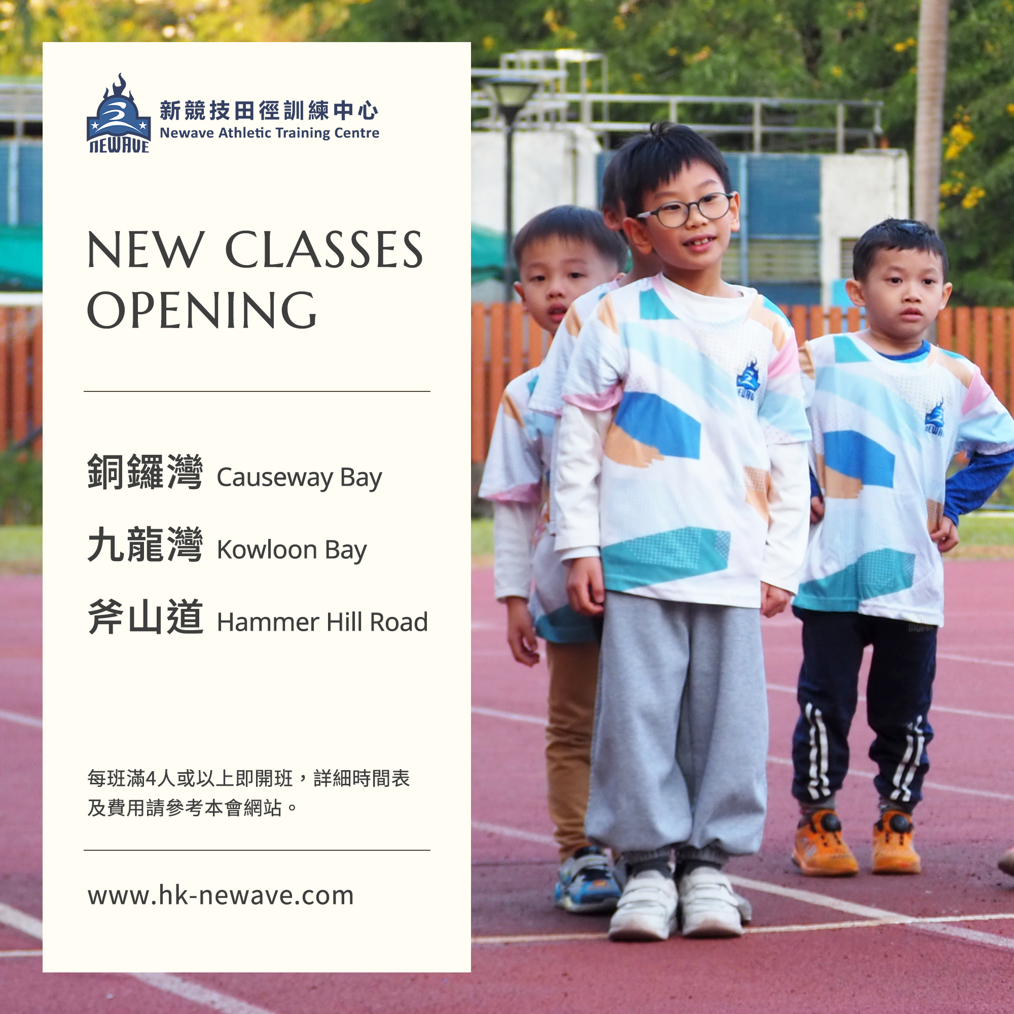 田徑係一切運動之母,練好田徑對其他體育專項都有加分! 新競技田徑 Newave Athletics 現加開3個運動場田徑班,希望可以令更多兒童及青少年接觸田徑,鍛煉身心健康,變得更自信積極!