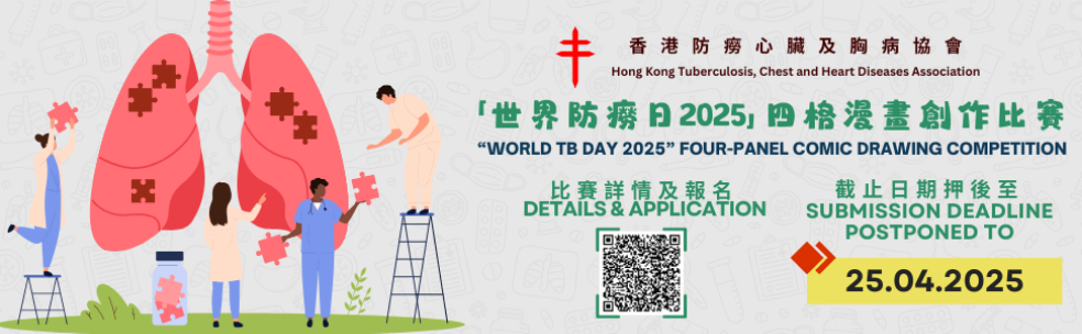 - 參加者須填妥參賽表格,連同參賽作品於截止日期或之前一併郵寄或親身提交至:香港灣仔皇后大道東266號李東海大樓地下。信封面請註明〈世界防癆日2025四格漫畫創作比賽〉。
