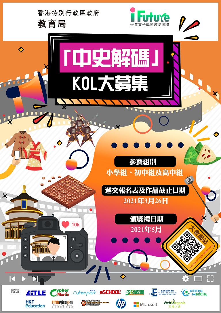 作品遞交的截止日期為2021年3月26日;參賽者須把參賽作品(DVD)連同報名表於 網上遞交/郵寄/送交 天水圍天華路51號萬鈞伯裘書院,由學校轉交予香港電子學習教育協會 (信封面請註明< 「中史解碼」 KOL 大募集 >,以及參賽者所屬學校及姓名 。)