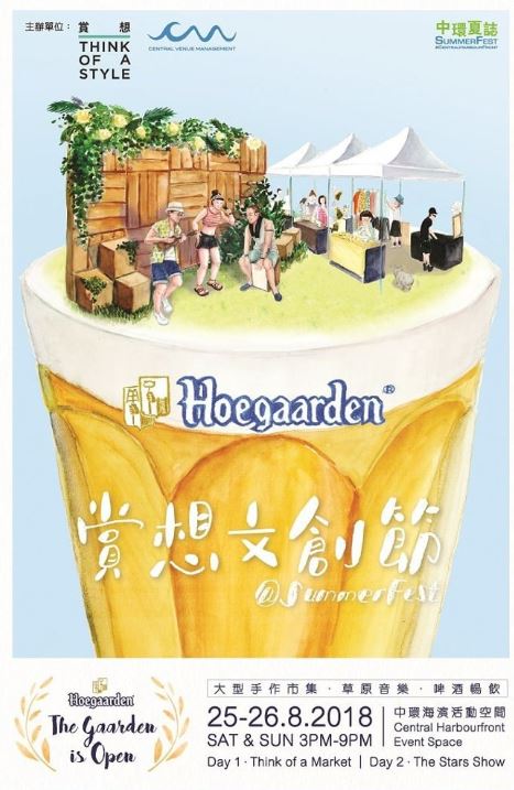 作為中環夏誌 2018 壓軸節目,比利時白啤品牌 Hoegaarden 聯乘本地手作平台「賞想‧Think of A Style」,於 8 月 25、26 日周末在中環海濱活動空間舉辦「賞想文創節」,攤位聚集超過 300 個來自香港、台灣及日本等地手作單位,舉辦手作工作坊,還有 Mr. Wally 及 Judas Law 現場街頭表演,為今屆中環夏誌劃上句號。