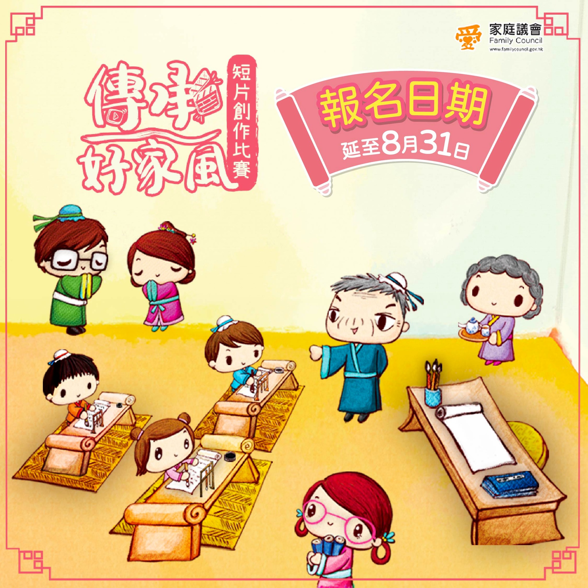 民政及青年事務局和家庭議會(下稱「主辦機構」)推出「傳承好家風」短片創作比賽,鼓勵高小及初中學生發揮創意,透過製作短片提倡重視和傳承中國人傳統美德如孝順父母、尊老愛幼、夫妻和睦、誠信有禮、鄰里守望等。