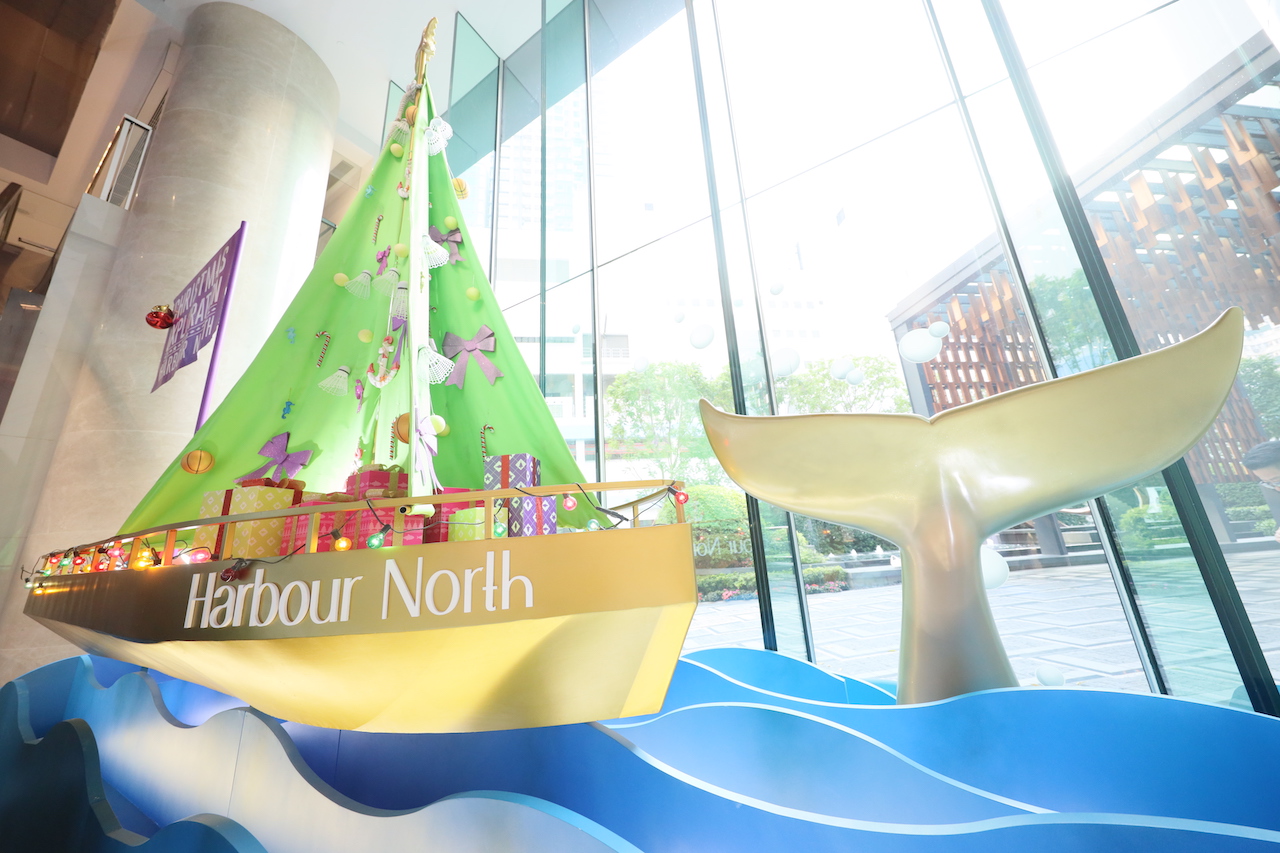 為迎接聖誕佳節,北角匯藉著臨海優勢,更搖身一變成為聖誕海洋世界,多個海洋主題場景將分佈於商場1期及2期各樓層,多個可愛鯨魚、海豚與船艇裝置,將帶領大家暢遊聖誕海洋探險之旅!當中最矚目的必定是於商場戶外海濱草地的8米長巨鯨立體裝置,顧客可於柔和海風中近距離與巨鯨打卡自拍,同時盡覽海天一色的美景,感受不一樣的海洋系聖誕節!