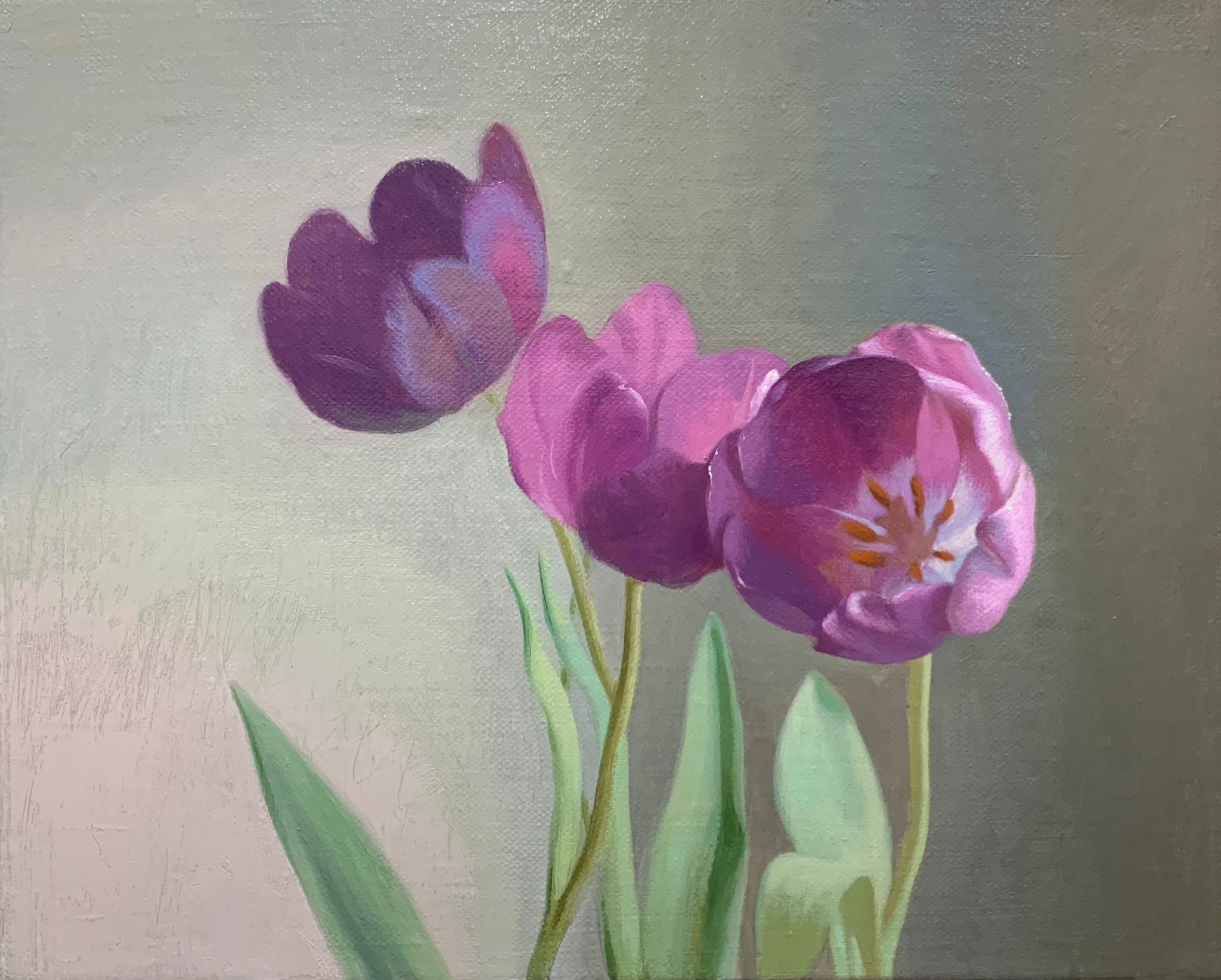 這次展出的系列作品以花卉為主題,是胡浚諺近三年來主力繪畫的題材。他畫的並非在大自然中的花卉,而是置放於花瓶中作為家居點綴的花束。胡浚諺認為,即使是這些作為裝飾品的花卉也是一種生命體,也在無聲地經歷生命的變化,其各種生命形態有獨特的吸引力。固他以寫實的筆觸將包括鬱金香、玫瑰、繡球花、百合花等花卉在不同階段、不同時間和不同光源下的狀態記錄,透過層次和細節的精妙處理,呈現出它們生命的痕跡。例如作品《五點鐘的陽光》描繪出處於最後花期的鬱金香,在殞落之前卻是綻放得最燦爛,映襯著一天之中最美麗也是最後的陽光,既令人感慨生命的奧妙,亦引申出我們對自身生命、人和空間之間關係的思考。