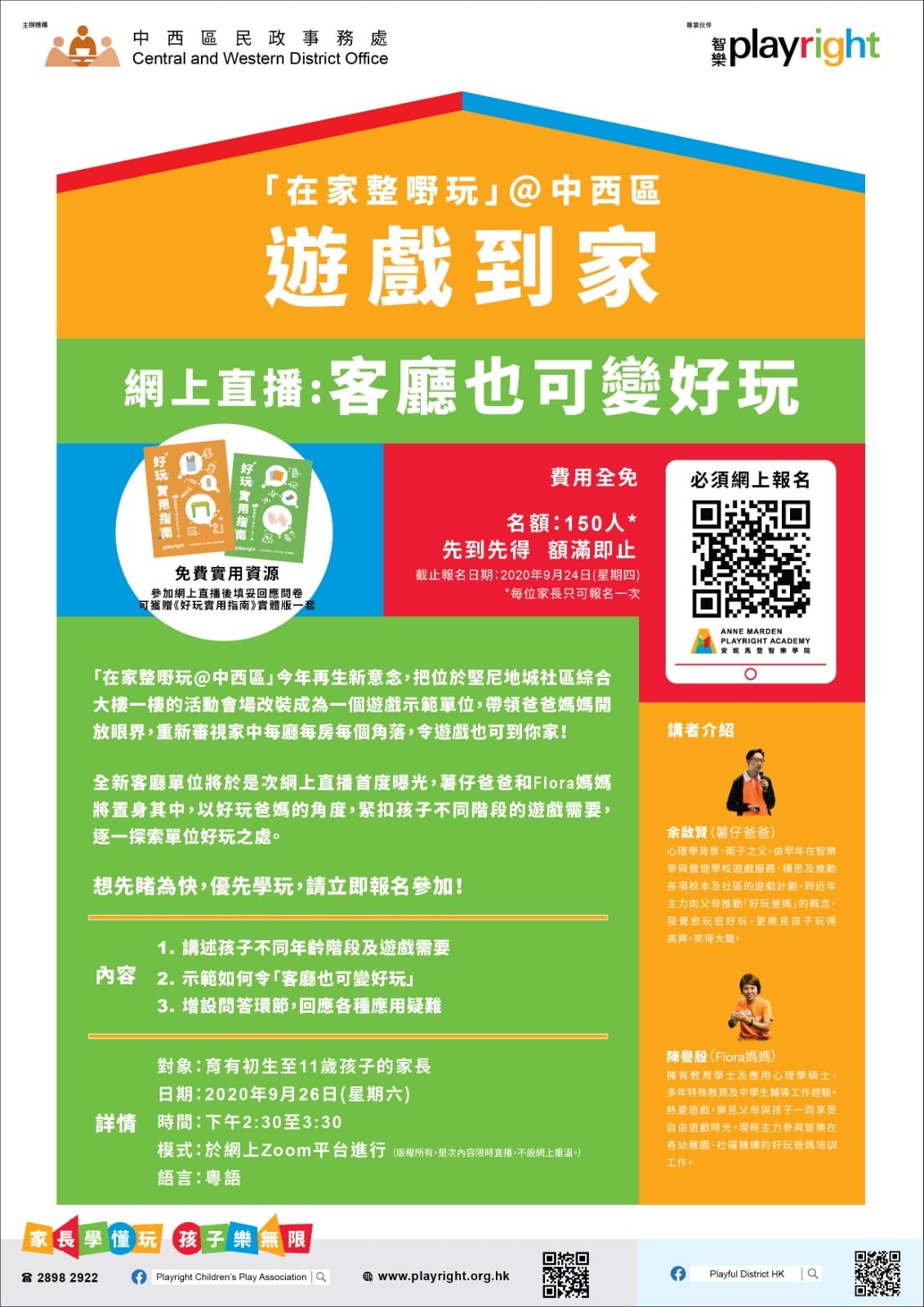 活動在家整嘢玩@中西區 遊戲到家-網上直播「客廳也可變好玩」
