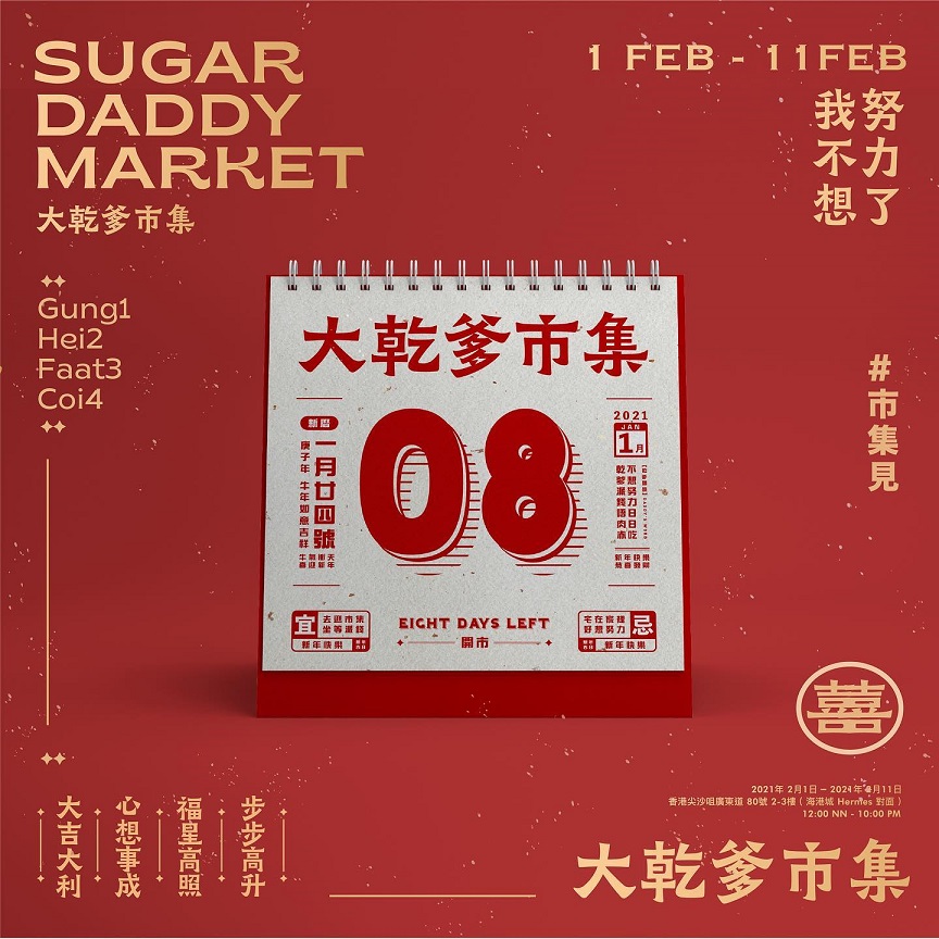 新年又係行年宵市集好時機! 今年首度由香港超人氣 YouTuber 雪姨與一眾名人、KOL 合作,在尖沙咀舉辦的「《大乾爹》年宵市集」,佔地兩層逾12,000 呎,有近120個精選本地品牌攤位,無論是美食美酒、服裝飾品、水晶塔羅、本地手作精品、美容護膚等等,推出不同優惠。到場人士皆可獲贈威露士酒精搓手液兩支(20ml)、BIODERMA Sensibio防敏護理體驗裝(只限個別指定日子)乙個。