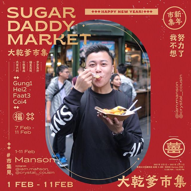 名字《大乾爹》背後設計意念是希望為香港本土小店提供平台找到他們的金主「乾爹 Sugar Daddy」。很多大家喜愛的香港知名YOUTUBER 也會出席售賣產品,當中包括藝人陳凱琳、YouTuber波仔及家姐、Kosa Law、Rose Ma、Manson、poopstirrer等等。而除了一眾YouTuber外,同時亦有許多本地品牌,可以到場看看呢!