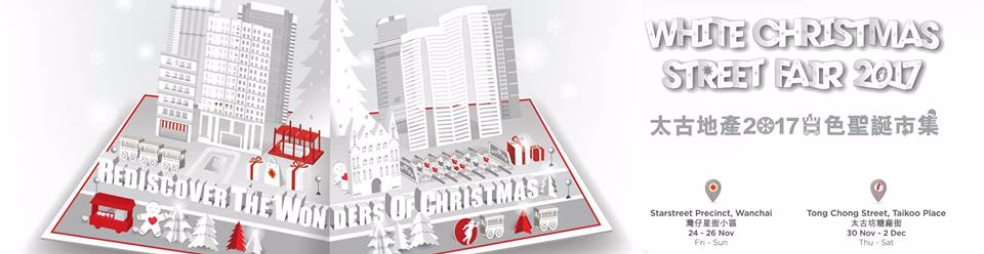 「太古地產2017白色聖誕市集」將分別在星街小區和太古坊舉行。今年的年度社區節慶盛事將以“暢遊星街及太古坊,尋獲聖誕新驚喜”為主題,並以我們的愛心薑餅人作導遊,帶領大家於這兩個社區享受聖誕購物、節日食品和飲料、現場表演和DIY工作坊等豐富節目。