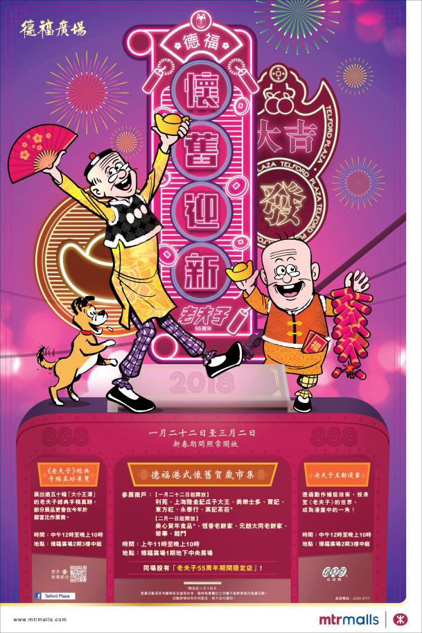 今個新年,老夫子、大番薯同多個香港老字號打造「德福港式懷舊賀歲市集」,多個6-70 年代嘅打卡位,包括影樓、冰室、米舖、電車等等,可以同老夫子等角色逐個影相之餘仲可以買懷舊小食玩意同老夫子精品。2期仲有老夫子手稿真跡作品展覽同互動漫畫遊戲,玩到唔捨得走呀!