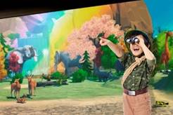 保育森林的重責就落在掌握保育知識的小小森林保育員!透過嶄新投影技術打造多個場景,由漆黑一片的環境轉為綠油油的大地,小小森林保育員經歷大自然受到破壞後,隨即展開保育工作,仿如置身於孕育不同動物及植物的森林當中,與動物作近距離接觸及有趣的互動。小朋友可從中了解生物多樣性及保育森林的重要,學懂要愛護大自然。
