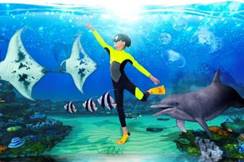 海底世界有很多生物值得小小海洋探索家深入研究,宣揚保護海洋環境亦是他們的職責。各位好奇的小小海洋探索家現可登上「海洋生態探索號」,帶各位潛入蔚藍的深海,戴上3D眼鏡,透過一段4分鐘的短片,模擬置身於海洋之中,探索海底奇觀的同時,亦可觀察飄浮垃圾的嚴重性,向公眾傳遞源頭減廢的環保信息。