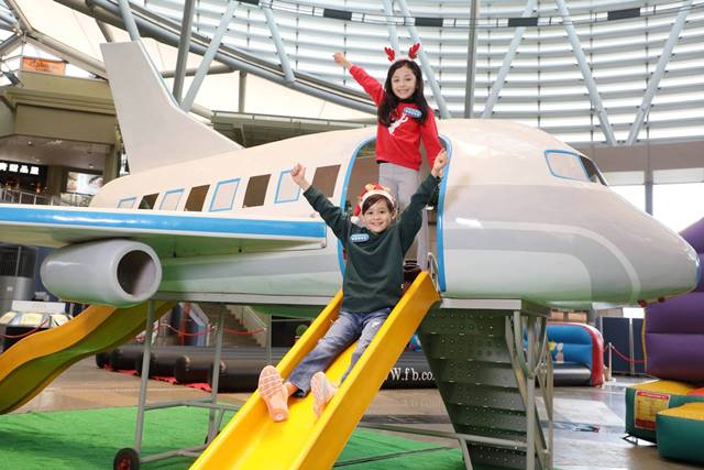 場內會停泊一架小型飛機滑梯,機艙化身成兒童樂園,小朋友可於滑梯一躍而下,一嘗當機長的滋味。 |