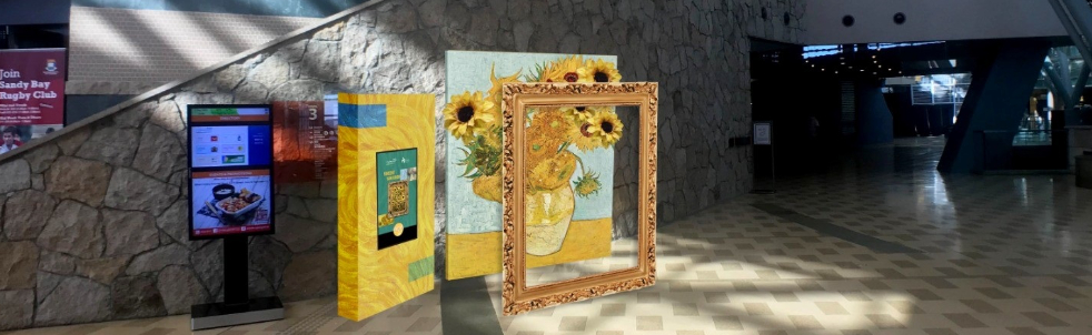 數碼港商場四處均設有多個《向日葵》主題的打卡位及互動體驗裝置。當中包括「躍動的向日葵畫框」、「向日葵趣聞牆」、「活力『梵』花打卡走廊」等,讓大家猶如置身於「梵」花世界之中,被熱情的向日葵花所包圍。另外,還有「自拍藝廊:創作你的自畫像」互動遊戲 ,訪客可以親身體驗。透過科技應用,成為畫中主角並創作出與梵高相似的自畫像。此外,商場四周也貼上許多向日葵貼紙,瀰漫着春日「梵」花藝術氛息!