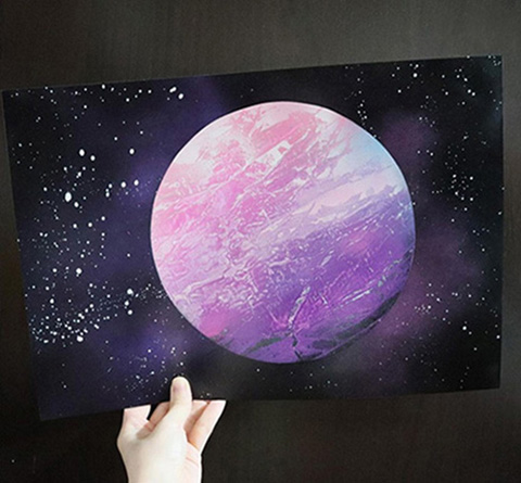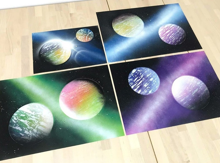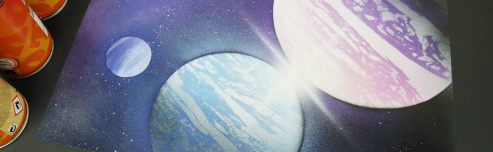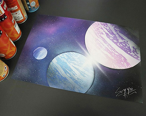 噴漆畫常見於國外街頭藝術,或令人聯想到街頭塗鴉。但以噴漆作為媒介在紙上作畫則於香港不常見,在課程上學員無需任何繪畫經驗也能夠做出美麗的星空噴畫。