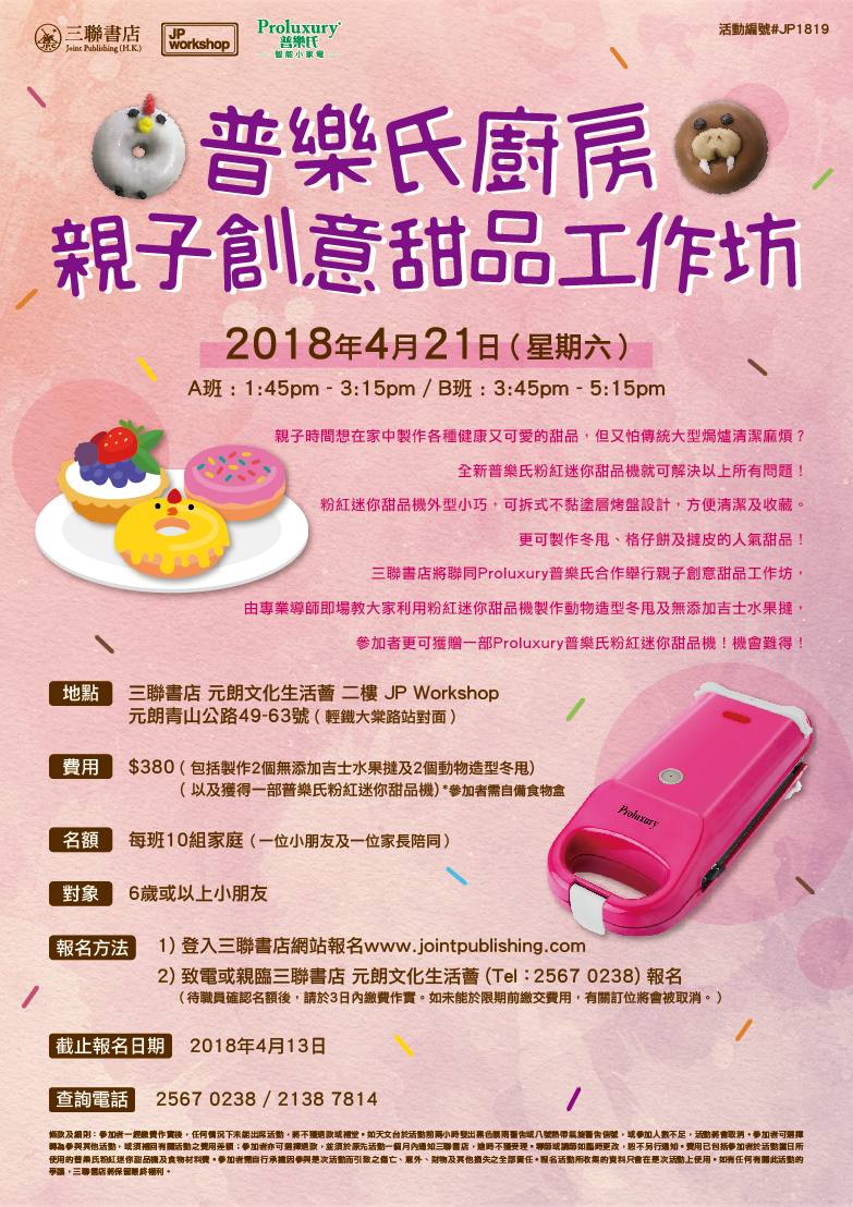 三聯書店將聯同Proluxury普樂氏合作舉行親子創意甜品工作坊,