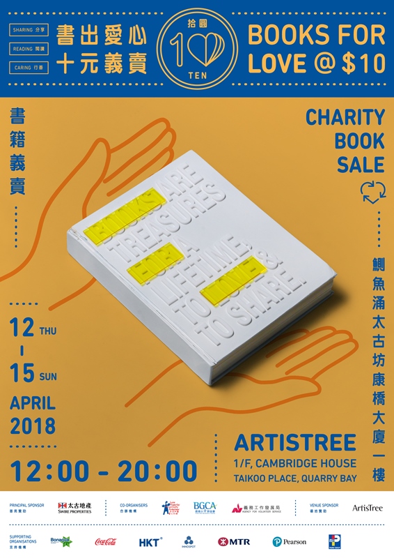 屆時,所有新舊圖書一律以HK$10義賣,收益全數撥捐「香港小童群益會」及「義務工作發展局」作慈善用途。