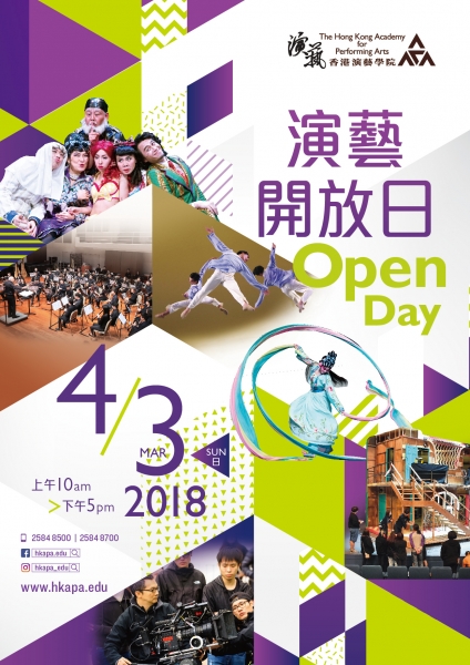 備註:免費入場,公眾可瀏覽https://www.hkapa.edu/tch/event/hkapa-open-day-2018 閱覽開放日的節目內容。