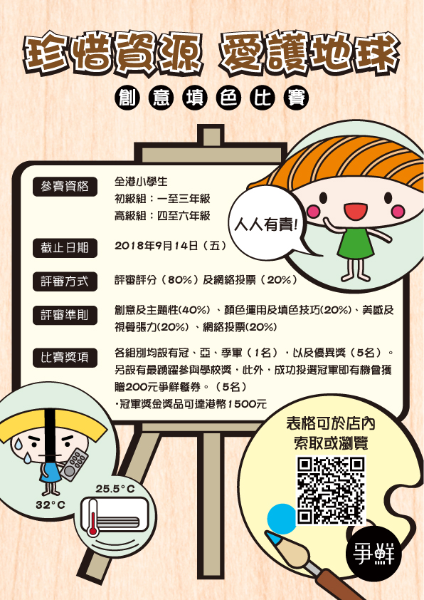 今年以「珍惜資源 愛護地球」為題再次舉辦填色比賽,希望各位小朋友發揮創意之餘,亦能夠反思如何愛護地球。