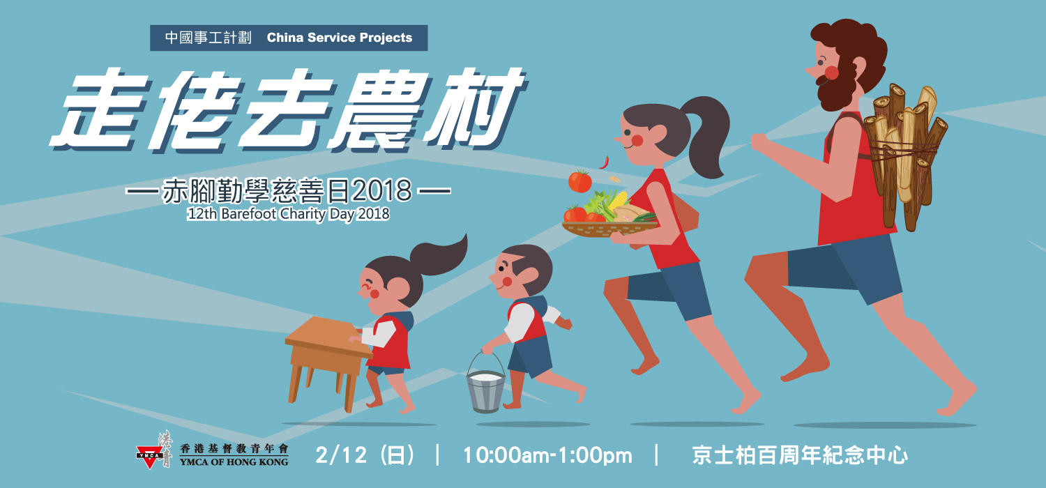 香港基督教青年會即將舉辦第12屆「赤腳勤學慈善日」籌款活動,本年度主題為「走佬去農村」,讓參加者體驗 山區兒童每天赤腳上學,挑水做飯、下田插秧、墟市販賣、摸黑寫字、*戶外攀爬...... 是次籌得的款項將資助廣西的農村學校購買課桌椅,以改善山區學童的學習環境,以知識改善命運!