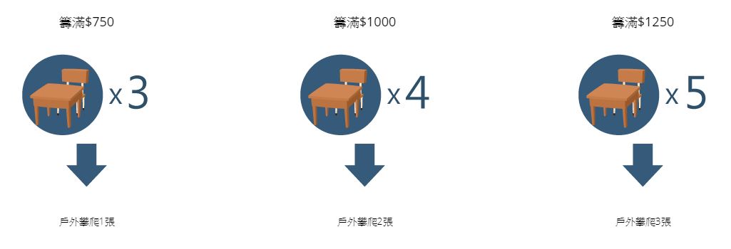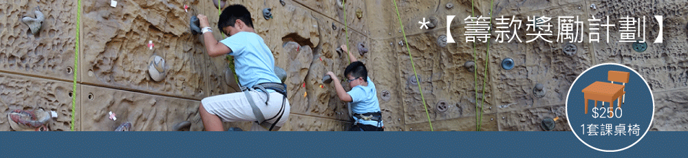 每套課桌椅$250, 籌得越多課桌椅,獎你當天體驗戶外攀爬,每張劵可供1位參加者體驗戶外鐘攀爬,2張可供2位體驗,如此類推,最多可累積10張。名額有限,先到先得。
