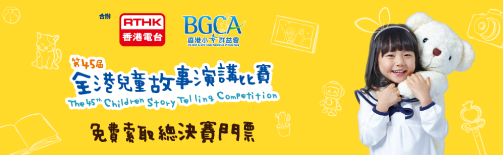 由香港電台、香港小童群益會合辦的「第45屆全港兒童故事演講比賽」初賽已經於早前順利完成。多年來,比賽一直深受到兒童、家長及老師歡迎,成為香港舉足輕重的兒童演講活動。今年的比賽主題為「我最珍貴的……」,希望讓下一代由自身出發,思索自己最珍貴的人或事,並藉著聆聽和演繹與主題有關的故事,學懂珍惜得來不易的東西。(如欲了解更多,歡迎瀏覽大會網站:https://storytelling.bgca.org.hk/ )