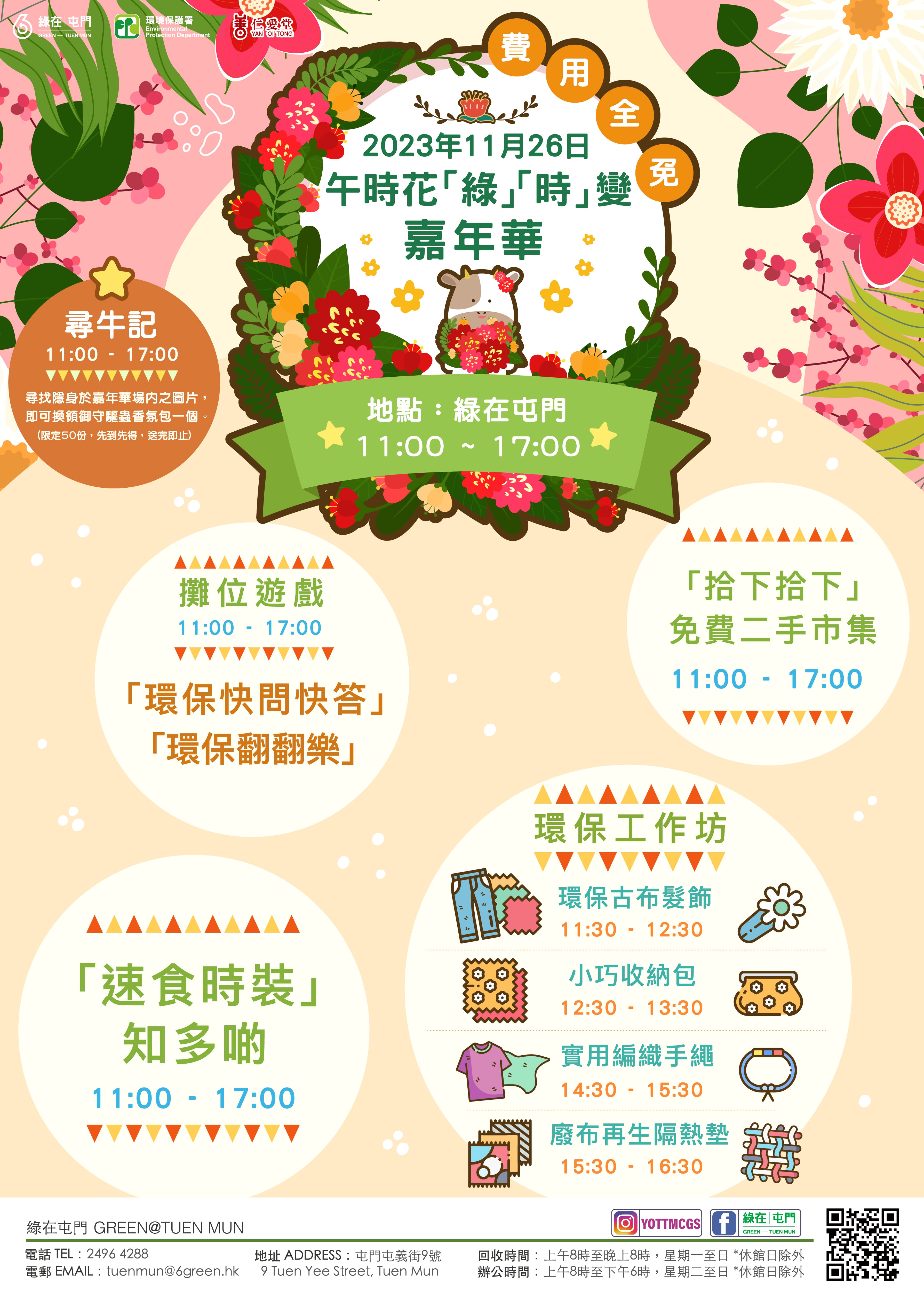 🎈活動:「速食時裝」知多啲、環保工作坊、免費二手物市集、攤位遊戲及「尋牛記」特別活動