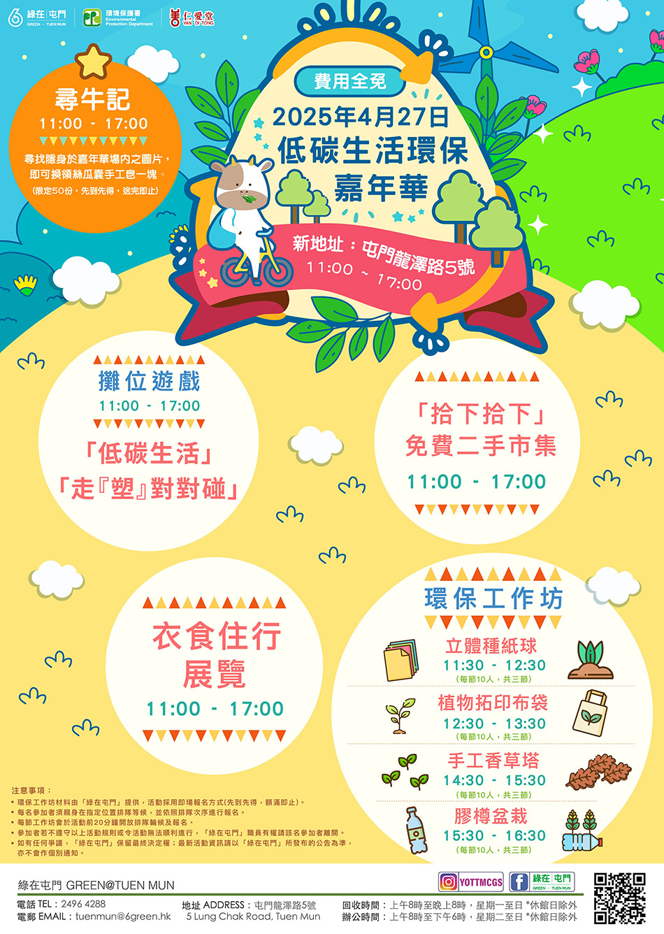 🎈活動:「衣食住行」展覽、環保工作坊、免費二手物市集、攤位遊戲及「尋牛記」特別活動