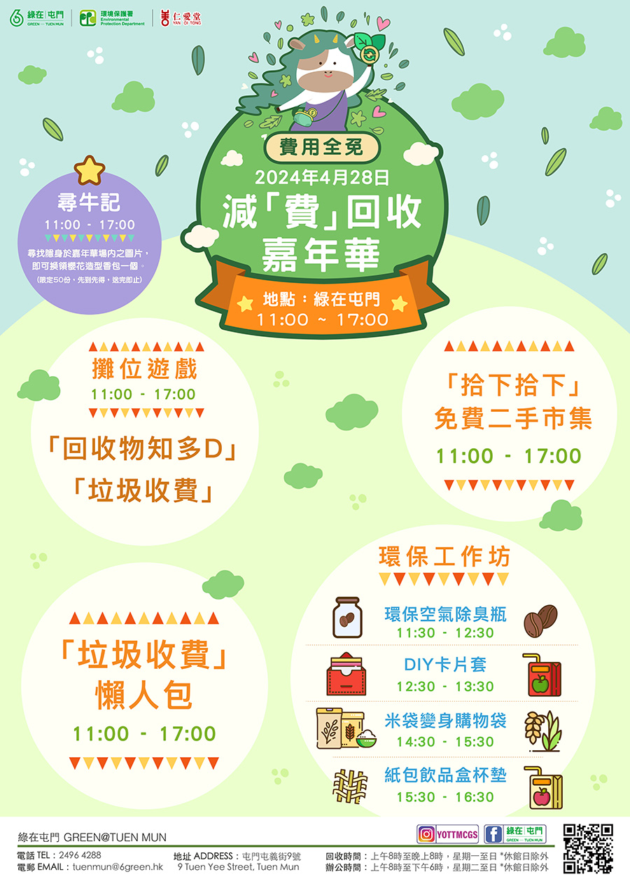 🎈活動:「垃圾收費懶人包」展覽、環保工作坊、免費二手物市集、攤位遊戲及「尋牛記」特別活動