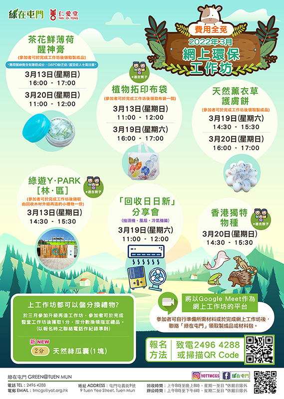 工作坊「綠在屯門」2022年3月份網上環保工作坊(費用全免)