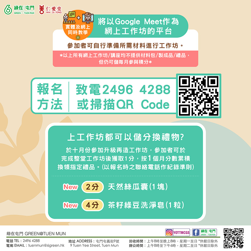 ⚠以上所有網上工作坊/講座均不提供材料包/製成品/禮品,但仍可儲每月參與積分❗⚠