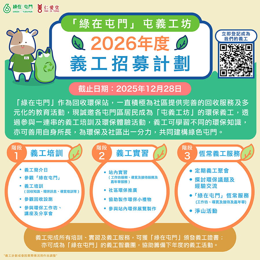 📣新一輪「綠在屯門」2026年度義工招募計劃,開始啦❗
