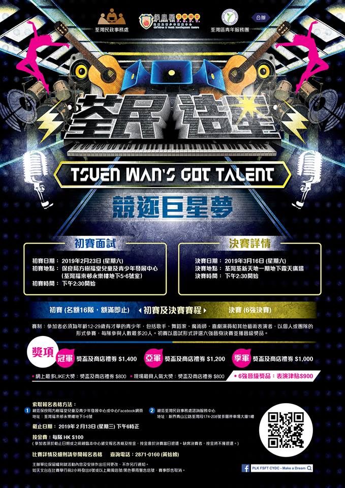 為鼓勵青年人注重多元才藝發展及勇敢追逐夢想,並推動本土藝術文化發展,「荃灣民政事務處」、「荃灣區青少年服務團」與本中心合辦「『荃』民造星」——青少年綜合才藝比賽,為全港青少年提供多元才藝表演平台,藉以發掘具才華的青少年,包括歌手、舞蹈家、魔術師、喜劇演員和其他藝術表演者,促進本地藝術文化交流。