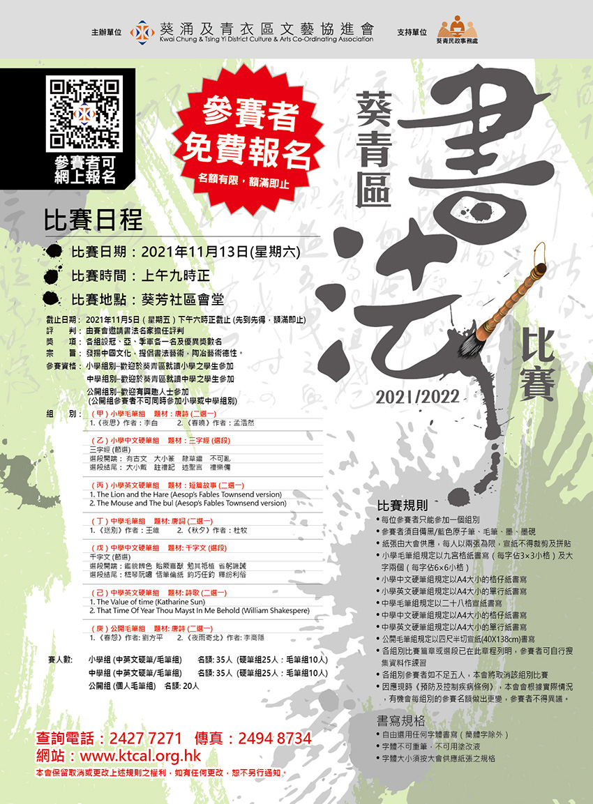 - 小學組別 – 歡迎於葵青區就讀小學之學生參加
