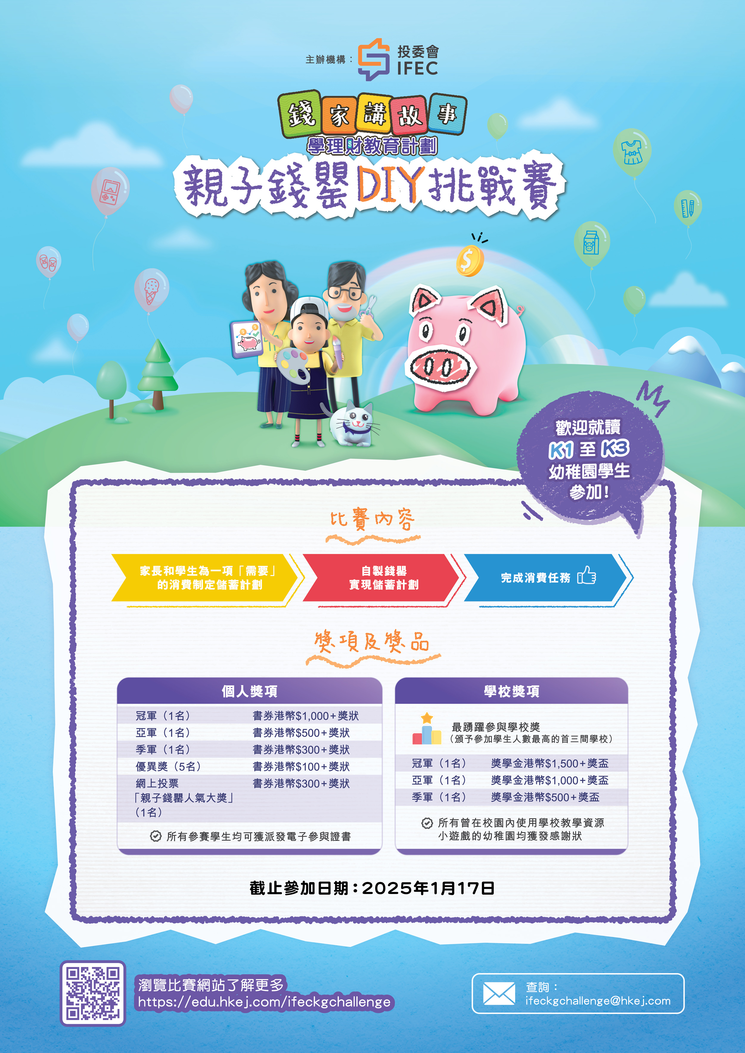由投委會舉辦的2024/25學年舉辦 首屆「錢家講故事學理財 - 親子錢罌DIY挑戰賽」💰🎨 🥳現已接受報名📣📣