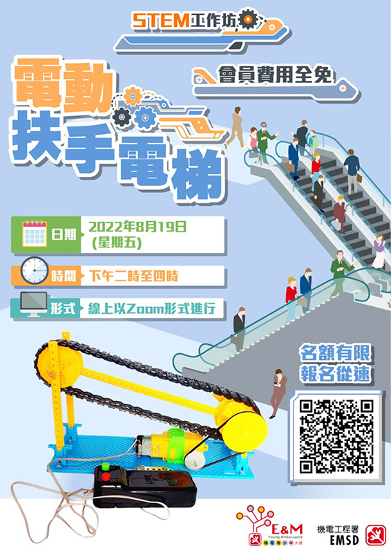 今個夏天咁熱……如果想避暑究竟去邊好?相信各位小小工程師第一時間都會想到同屋企人去商場行街睇戲食飯啦!大家又知不知道喺商場入面嘅升降機同扶手電梯原來都係是由機電工程署規管呢?扶手電梯大家就經常乘搭,你們又有沒有了解扶手電梯嘅運作原理呢?今期STEM工作坊我們會和大家製作屬於自己嘅的扶手電梯,另外還會有機電署嘅的工程師分享,這樣大家就可以學習到扶手電梯的運作原理同安全守則啦!