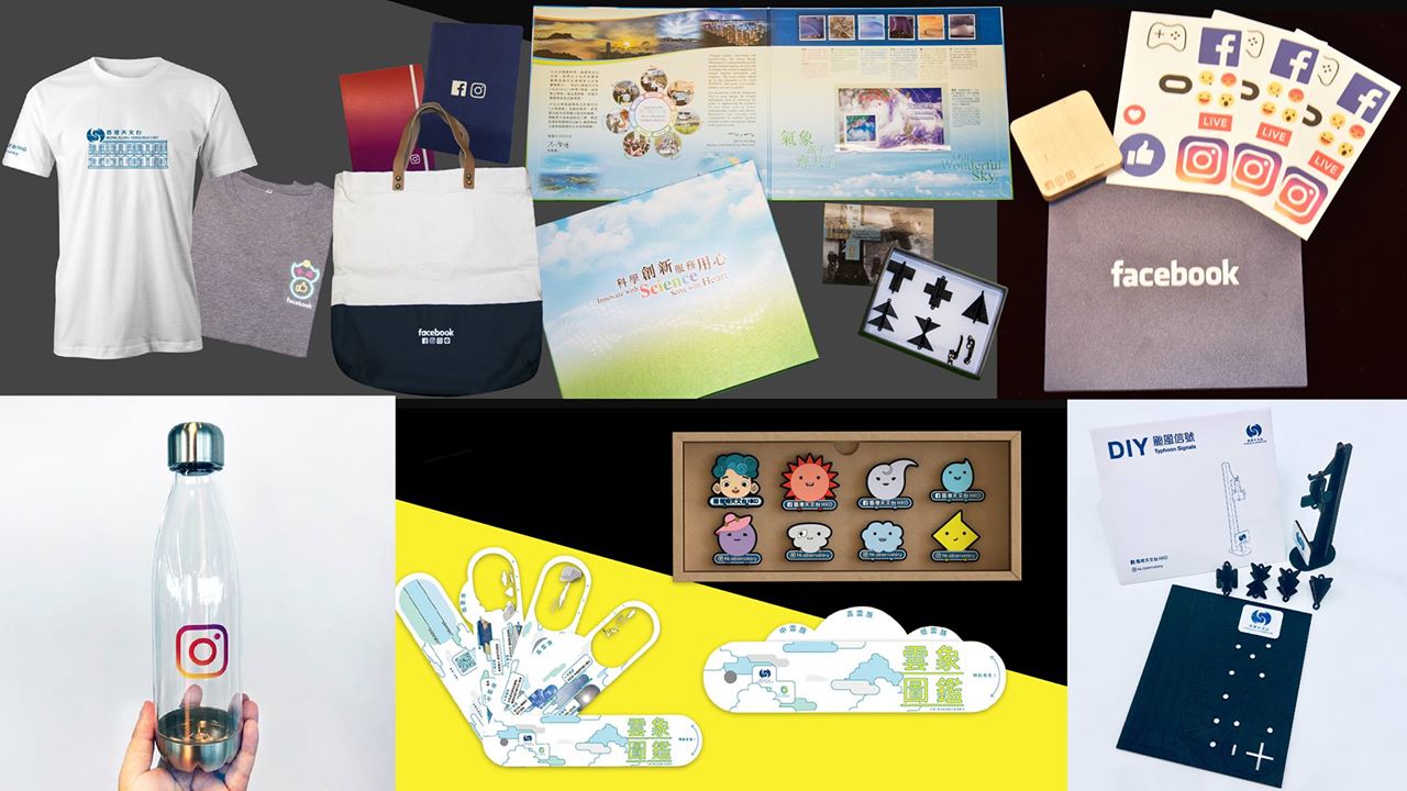 1. 香港天文台限量版「天氣現象」郵票、限量版「風球模型」、「雲象圖鑑」、天氣家族紀念品、香港天文台T-shirt
