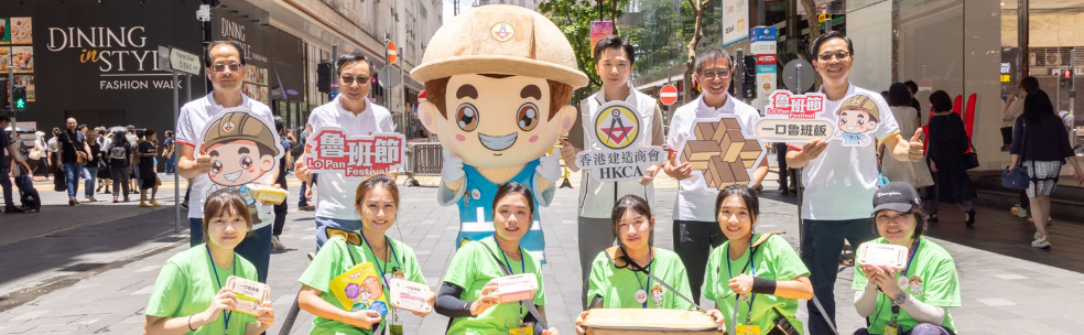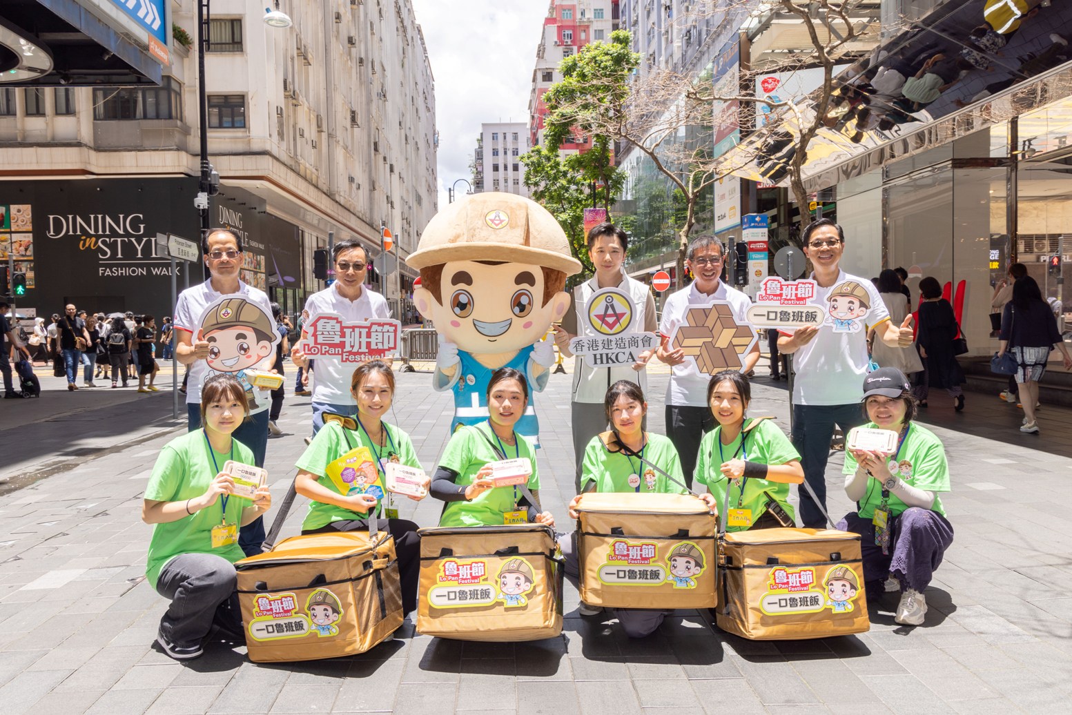 香港建造商會「魯班節」今年載譽歸來,以「魯班精神•傳承與創新」為主題,推介連串慶祝活動。大會於7月份快閃觀塘、銅鑼灣以及建築工地,為市民及工友炮製總共近2000盒輕便健康的「一口魯班飯」,以嶄新風格讓大眾體驗行內「老闆請食飯」的傳統習俗。香港建造商會會長林健榮測量師,MH於7月11日和一眾幹事於銅鑼灣向市民送出「一口魯班飯」,全新萌爆吉祥物「魯班弟子」更快閃登場,弘揚魯班精神,鼓勵大家叉叉電後再拼搏,連繫社區。