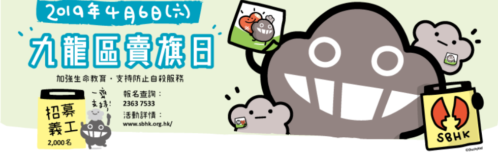 香港撒瑪利亞防止自殺會將於2019年4月6日(星期六)舉辦「九龍區賣旗日」;是次賣旗所籌得的善款,將用於加強生命教育及支持防止自殺服務。