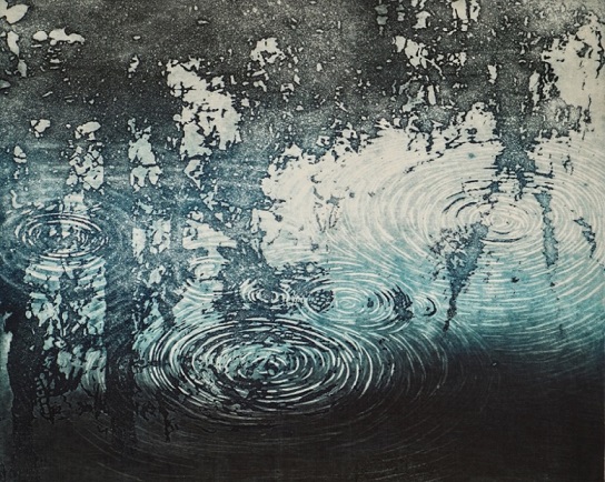 *藍調裡的漣漪/鍾大富/2019/凹版:蝕刻、裱貼/藝術家藏