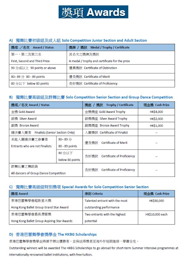 獨舞比賽高級組之報名費﹕ 每項港幣1,450元正