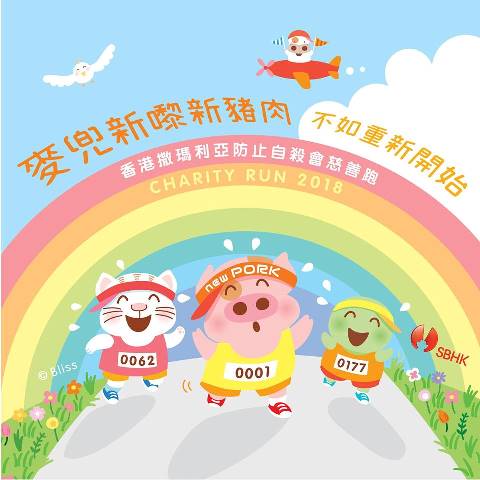 香港撒瑪利亞防止自殺會致力於防止自殺工作50多年,積極宣揚珍惜生命及關心身邊人的信息。我們希望藉著「麥兜•新嚟新豬肉」香港撒瑪利亞防止自殺會慈善跑2018鼓勵大眾與我們攜手,跟情緒受困者同行,聆聽他們的心聲並給予支持,陪伴他們走出情緒困局,即使面對逆境亦能像「麥兜」一樣樂天知命,與一眾摯友互相支持打氣的精神。是次活動同時為本會生命教育服務籌募經費。