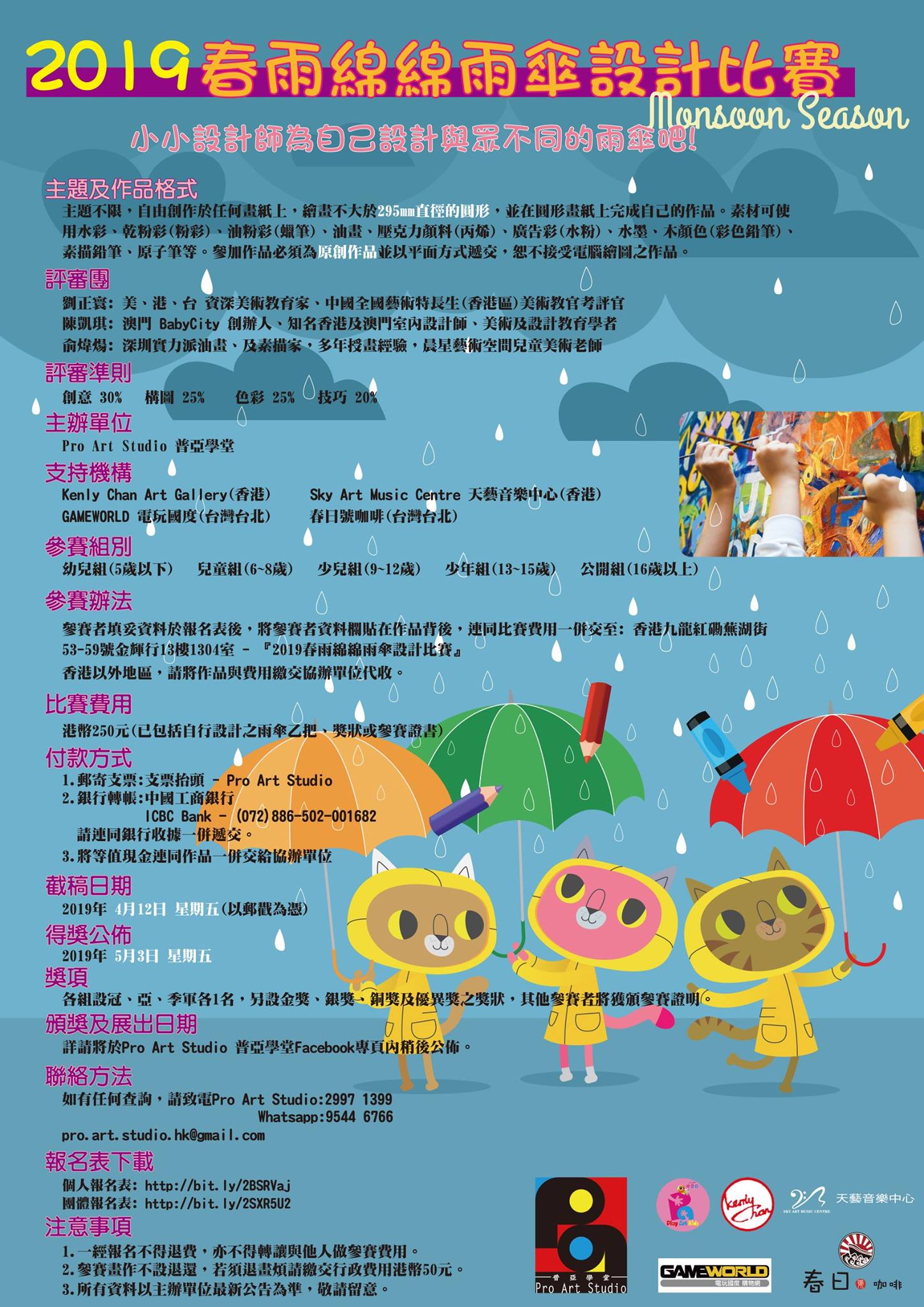 參賽者填妥資料於報名表後,並將參賽者資料欄貼在作品背後,連同比賽費用一併交至:香港九龍紅磡蕪湖街53-59號13樓1304室 – 參加「2019春雨綿綿雨傘設計比賽」