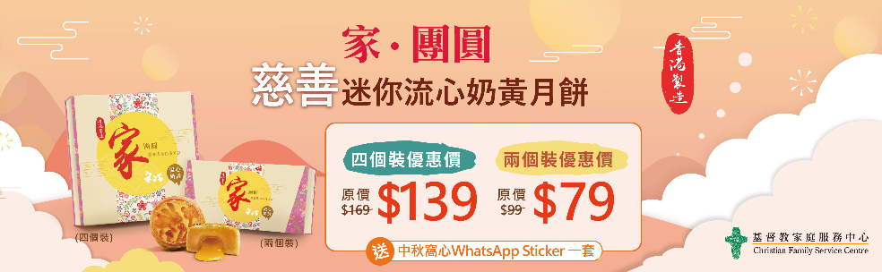 基督教家庭服務中心(CFSC)自1954年成立,紮根香港多年,一直致力支援及促進家庭功能。迄今,本會已發展成為一間提供多元化服務的慈善機構,服務涵蓋兒童、家庭、青年、長者、殘疾人士、精神健康、醫療健康、社區發展以及環保項目。全年受惠總人次超過1,080,000。本會將繼續發展不同多元化的服務,是次月餅義賣主要為本會服務發展籌募經費,如發展支援兒童、殘疾人士和基層家庭等不同的服務,誠邀您攜手共襄善舉。