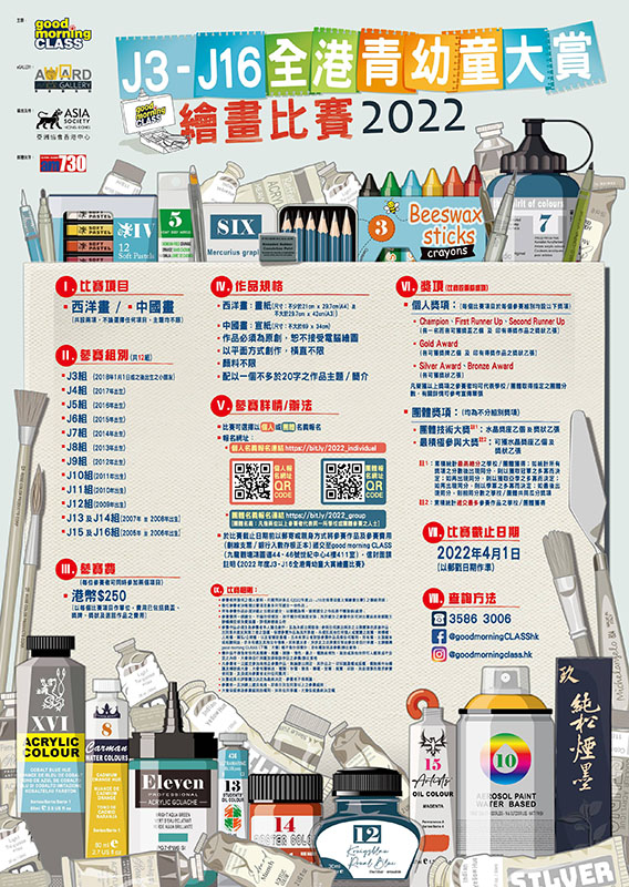 - 每個組別之得獎名單,將於2022年4月中、下旬於good morning CLASS 及 AWARDgalleryHK facebook專頁內公佈