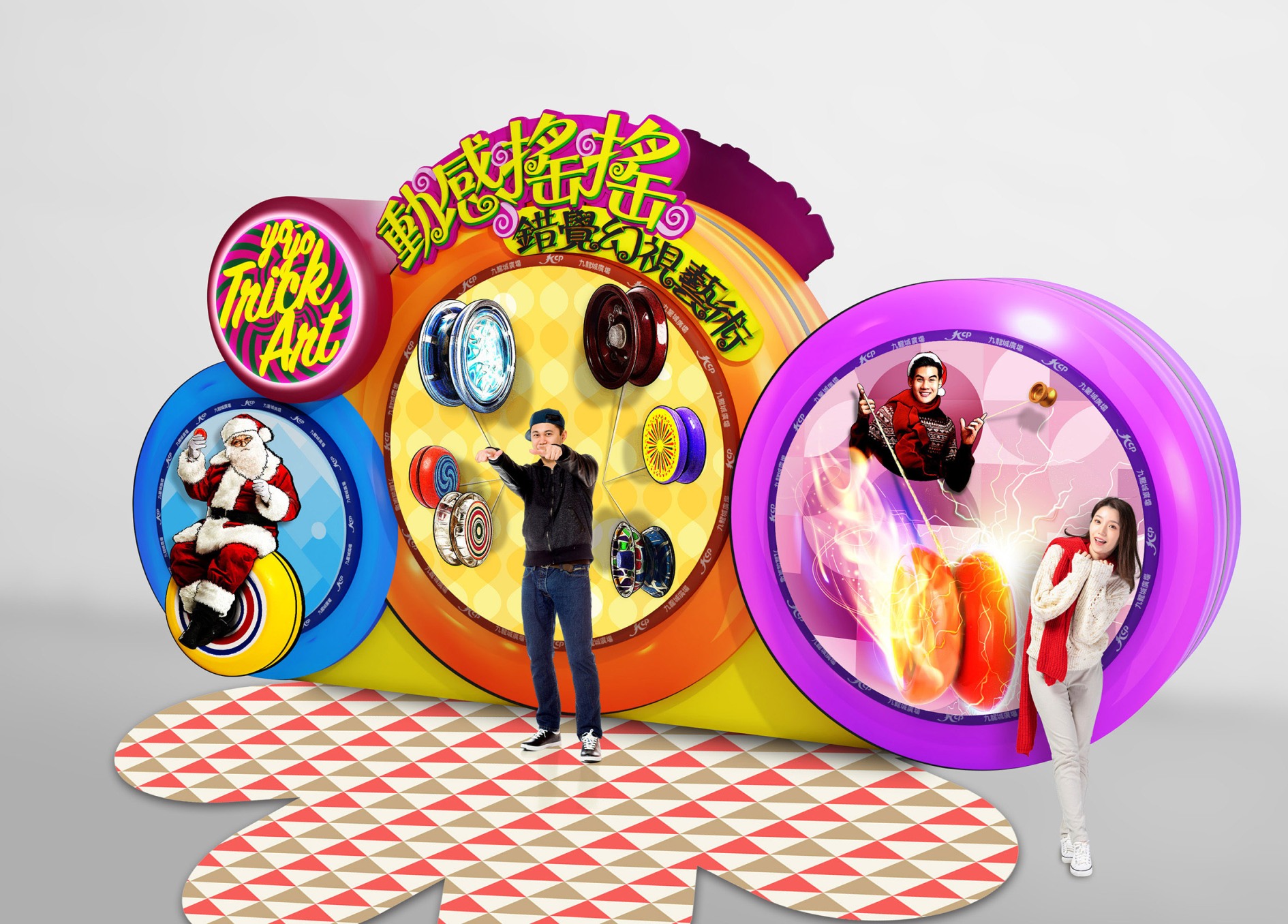 商場特設多個打卡位任你大閃特閃,《動感搖搖錯覺幻視藝術區》的巨型搖搖裝置上設多幅以搖搖為主題的3D Trick Art錯覺幻視插畫藝術,讓你秒速化身成鏡頭下的「搖搖聖手」夠曬犀飛利,體驗勁力旋風的威力。全港首棵4米高《搖搖聖誕樹》聳立商場中庭,掛滿逾八百個搖搖聖誕吊飾,實行動感搖曳閃亮佳節。