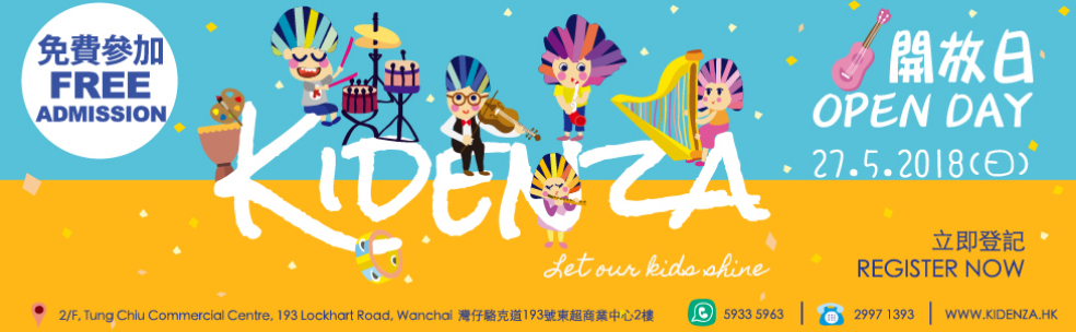- 各款樂器體驗包括小豎琴、敲擊樂、小提琴 (上午時段)、響笛 (上午時段)、夏威夷小結他 (下午時段)、色士風 (下午時段)