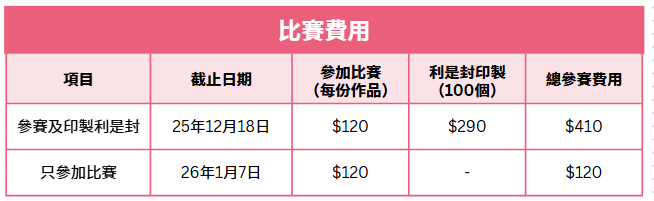印製利是封截止日期:2025年12月18日(需於截止日期前完成並遞交作品)