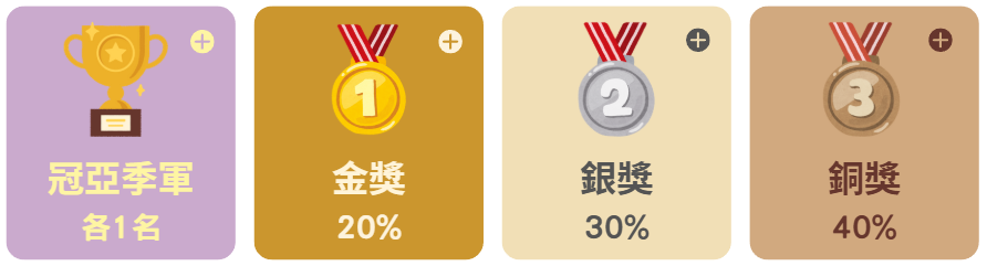 另設金獎20%、銀獎30%、銅獎40%,獲頒發獎牌及獎狀;