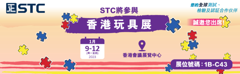 STC (香港標準及檢定中心) 將參與由香港貿發局主辦的香港玩具展。現誠邀閣下出席,取得最新的玩具及兒童產品規例要求,並了解更多 STC 的測試、檢驗及認証服務。